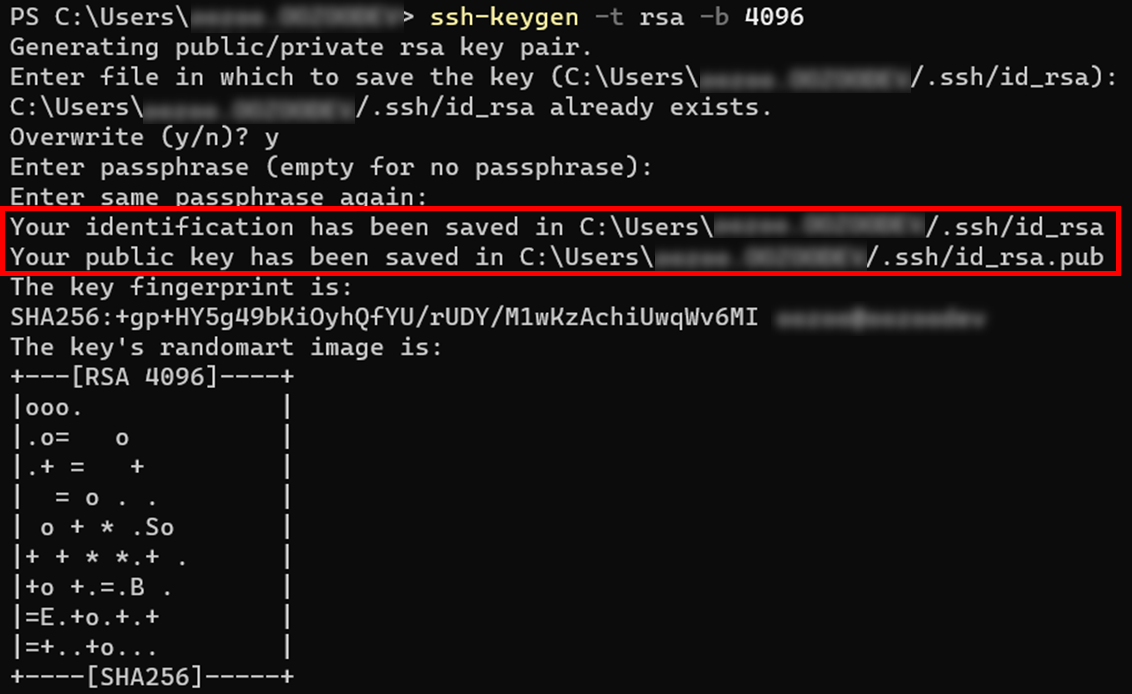 터미널에서 ssh-keygen 명령어를 사용해 ~/.ssh 디렉터리에 id_rsa(개인키), id_rsa.pub(공개키) 파일을 생성합니다. 이미 SSH 키 쌍이 있으면 이러한 파일을 덮어쓰기됩니다.